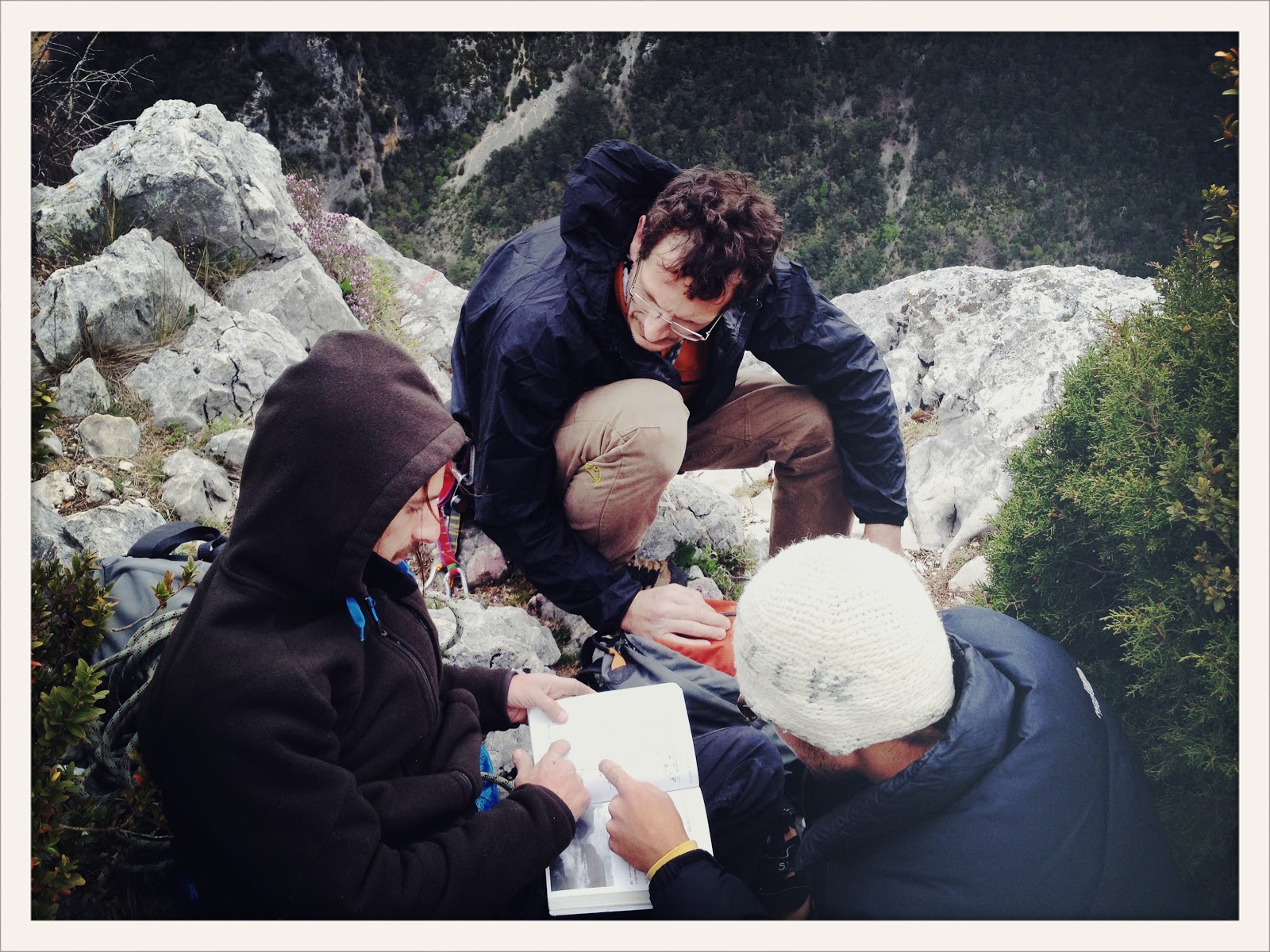 Abbiamo con noi due copie del libro "Quei pazzi del Verdon" e le foto ci ispirano parecchio così andiamo a cercare Triomphe d'Eros ma sbagliamo le doppie e di colpo siamo sospesi su un mega strapiombo con le corde che svolazzano nel vuoto a cento metri dal giardino. Per fortuna riusciamo a risalire per un bel tiro con lancio... troviamo infine le doppie e saranno tra le più belle che abbia mai fatto, anche Fabio concorda... mettiamo così piede sul giardino sospeso e vaghiamo non poco tra le frasche ma poi troviamo l'attacco grazie ad una buccia d'arancio che avevamo buttato dalla cima della via prima di calarci, incredibile! Se avessimo letto meglio il capitolo a riguardo non avremmo esitato tanto a lungo... Seguiamo le scritte e i bolli e mimiamo Edlinger nella famosa fessura del quarto tiro, che bel tiro! Finiamo con la luna che illumina le gole.